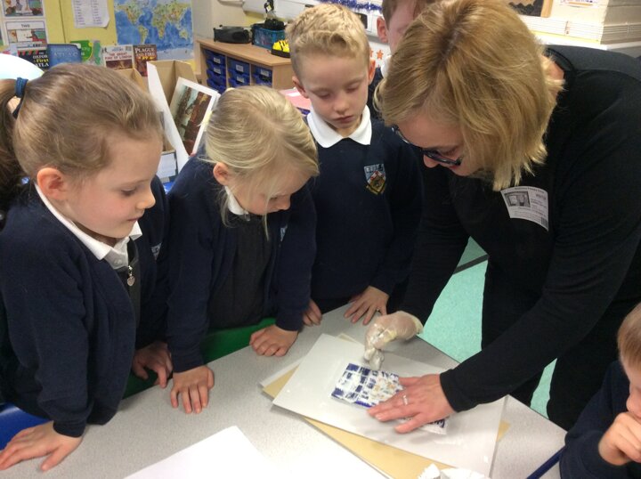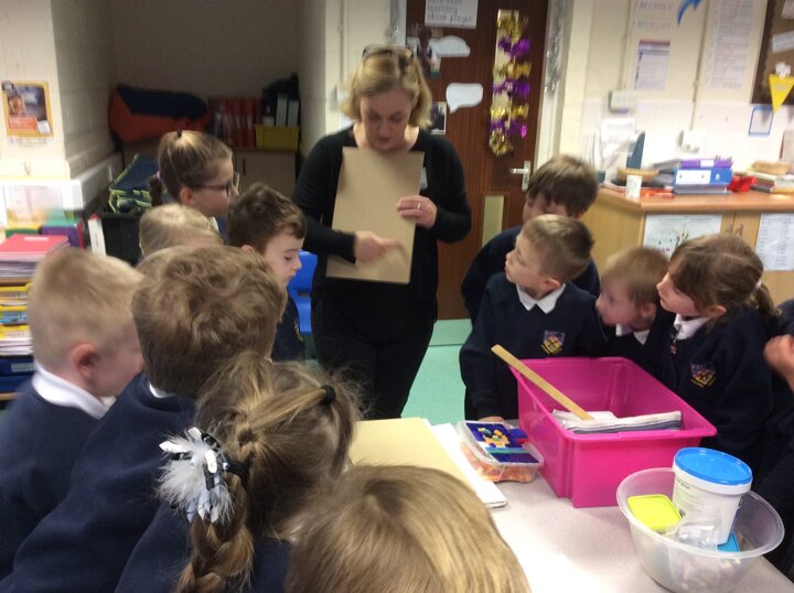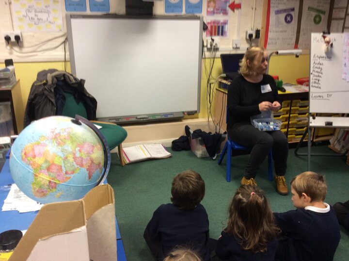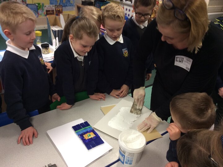 Today an artist came to visit. We are all going to work together to create a mosaic.