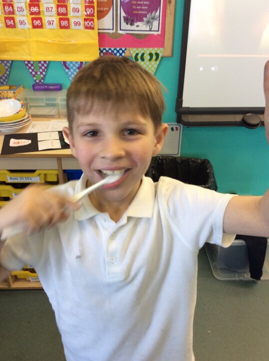 We have been creating our own toothpaste in Class 3.